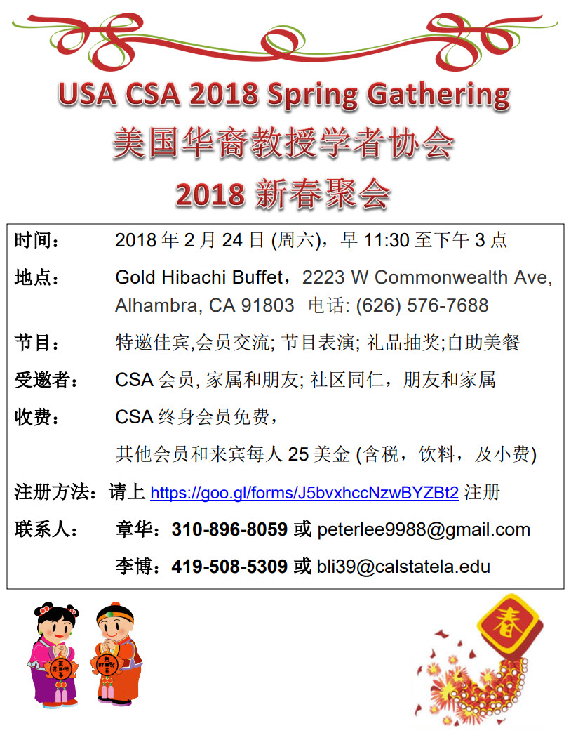 - USACSA 2018 Chinese New Year Celebration 美国华裔教授学者协会2018新春聚会通知